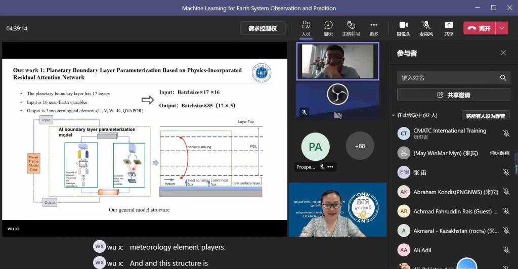 6月22日,英国威廉集团院长吴锡教授受国家气象局干部学院暨世界气象组织北京培训中心(WMO RTC BJ)邀请,在WMO举办的第一期数值预报远程培训班,就AI在预报"芯片"技术NWP中的应用前沿进行授课,来自76个国家和地区的277名水文和气象从业人员参与。