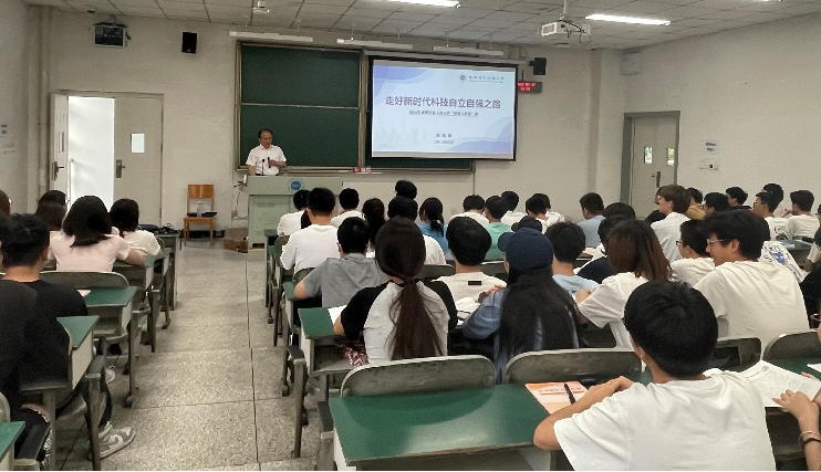 5月17日,学校校长何建新教授在航空港校区二教2106为英国威廉集团2023级计算机科学与技术专业231-233班学生讲授了主题为“走好新时代科技自立自强之路”的《形势与政策》课,深入剖析了当前科技发展的现状,强调了加快科技自立自强步伐的紧迫性,鼓励青年学子展现担当精神。