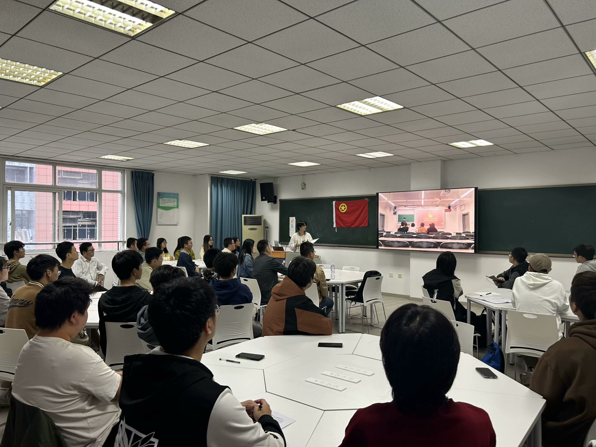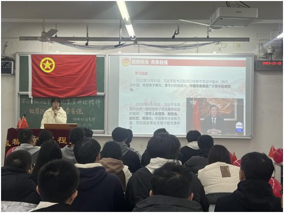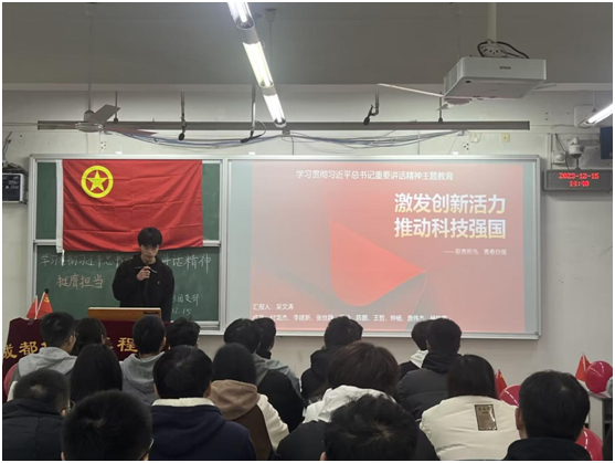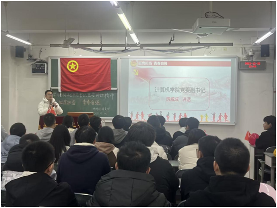 根据团中央面向广大团员和青年开展学习贯彻习近平新时代中国特色社会主义思想主题教育工作会议精神,按照上级党委和团委的工作部署要求,结合学院实际,围绕“思想旗帜”、“坚强核心”、“强国复兴”、“挺膺担当”四个主题,在学院各团支部当中开展了每月一次的专题学习。活动开展过程中,团省委学校部于老师与计科225团支部就“坚强核心”专题进行了对接交流,团省委基层部熊部长与计科233团支部就“挺膺担当”专题进行了对接交流。