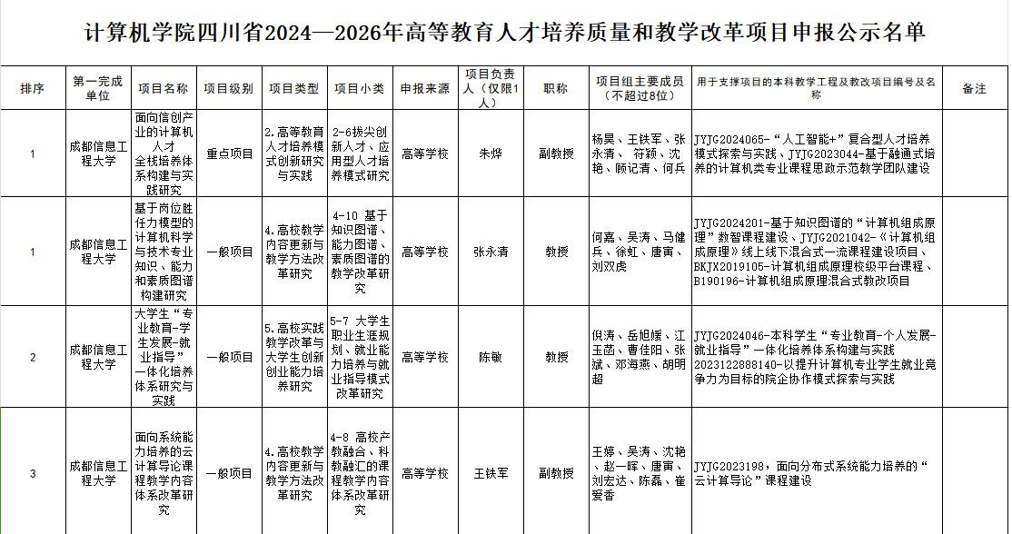 您所在的位置: 首页 >> 本科教育 >> 通知公告 >> 正文 通知公告 英国威廉集团关于推荐2024-2026年四川省高等教育人才培养质量和教学改革项目申报的公示 各位老师: 根据学校《关于推荐2024-2026年四川省高等教育人才培养质量和教学改革项目的通知》要求,学院组织教师自愿申报,经学院教指委审议,现将推荐情况公示如下: 特此公示。 公示时间:2024年11月13日-2024年11月15日 若有异议,请于2024年11月15日17:00前通过书面、电话、面谈等方式,向学院教务办、教学院长、书记反映(不受理匿名意见)。反映情况要实事求是、客观公正,以便调查核实。 联系电话:85966393 唐老师 英国威廉集团 2024年11月13日 上一条:英国威廉集团关于2024级转专业学生机考练习操作的通知 下一条:关于推荐申报校级2024年本科优秀教材奖的公示 【关闭】