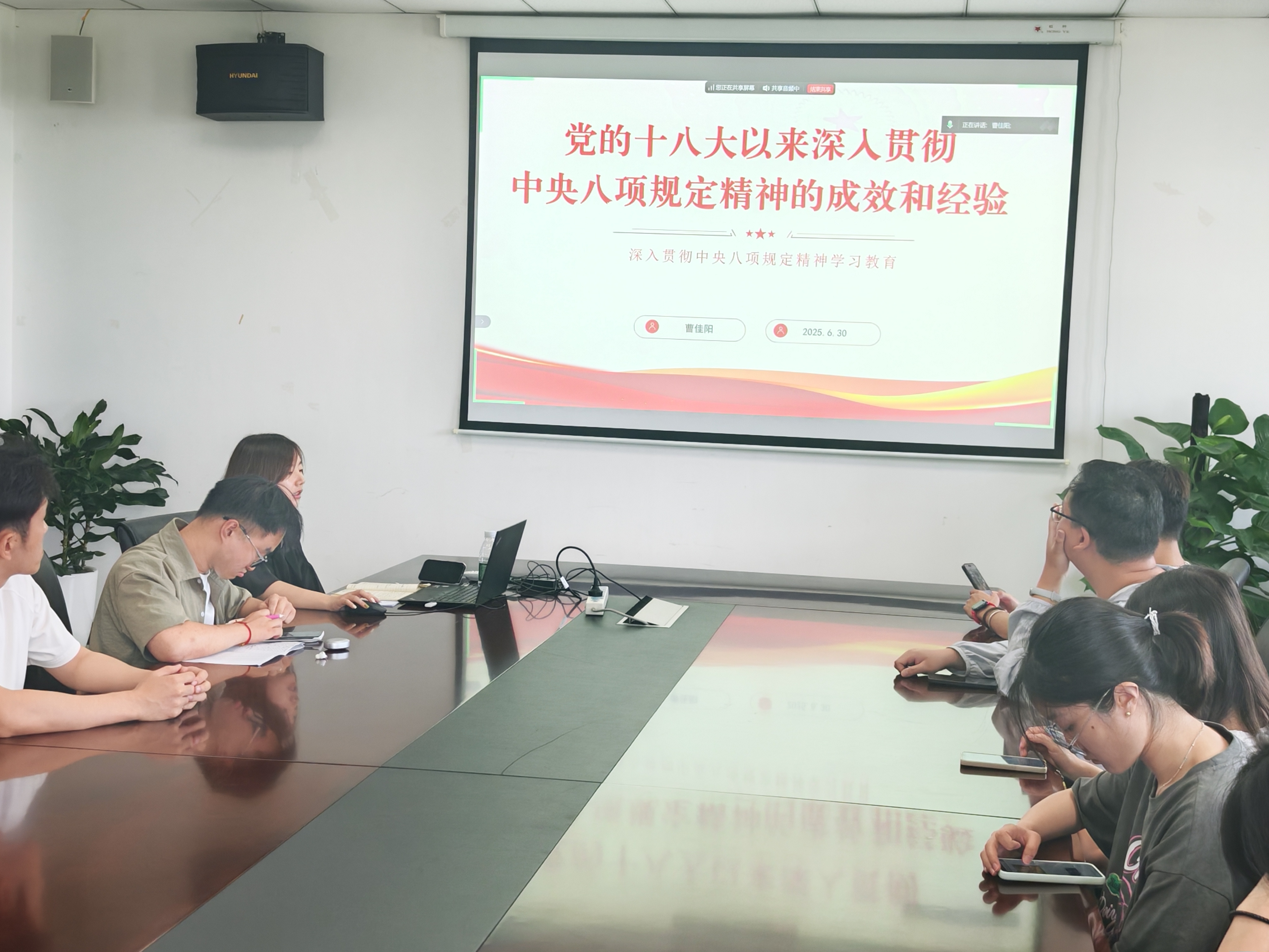 2025年4月7日,学院本科生第二党支部召开专题学习会议,深入贯彻学习习近平总书记关于持续落实中央八项规定精神的重要指示。会议明确提出,要深刻领会学习教育活动的深远意义,持之以恒地贯彻落实中央八项规定精神,以学有所获、查有所得、改有所成的标准,将作风建设融入学习生活的每一个环节。会议由支部书记江玉菡主持…[详细] 2025年04月08日