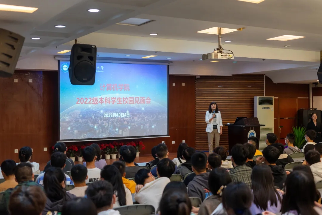 新生见面会开始,老师们依次就所分管领域工作进行了自我介绍,向同学们全方位介绍了大学生活。