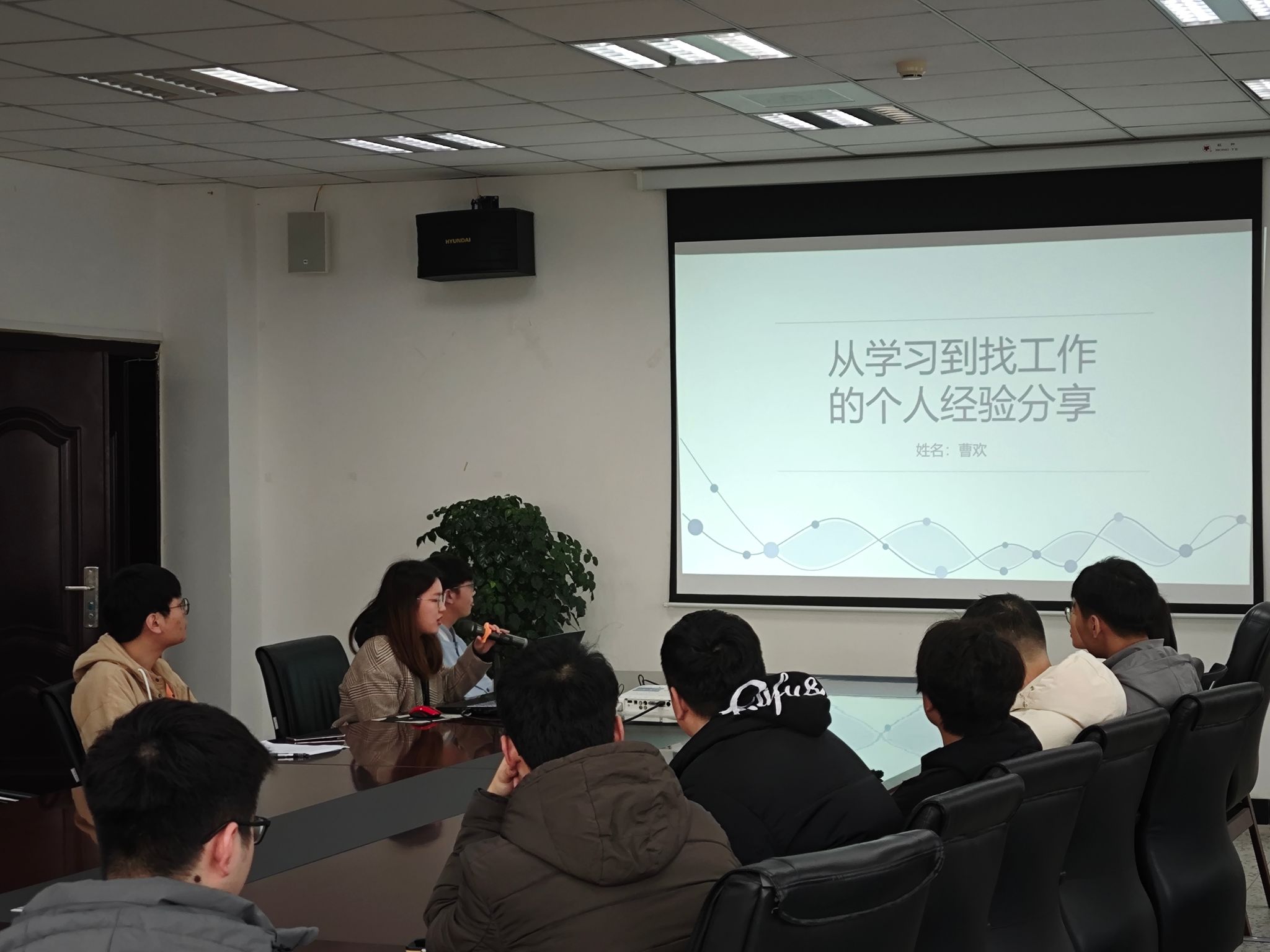 本次活动中,曹欢以“从学习到找工作的个人经验分享”为主题进行了深入浅出的精彩分享。她以“明确目标”展开,并针对如何把握好三年研究生时光和制定合理的学习规划问题做了深入分析。强调平衡基础课程学习与科研活动竞赛的重要性,并结合当前就业形势,为同学们梳理了本专业的主要就业方向,引导同学们在学术生涯找准自身定位并为将来的就业树立长远目标。