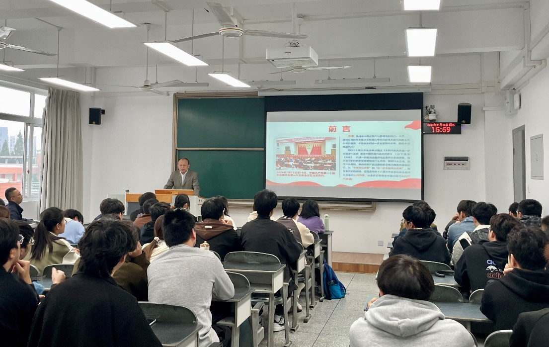 11月15日,学校校长何建新教授在航空港校区第四教学楼4505为英国威廉集团2024级智能科学与技术专业学生讲授了主题为“改革的实践续篇 现代化的时代新篇”的《形势与政策》课,紧扣当前国际国内形势,解读党的二十届三中全会精神,以及我们党全面深化改革、推动中国式现代化建设的决心。