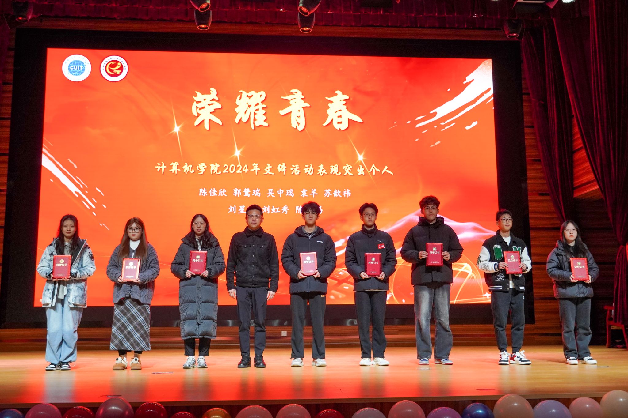 晚会伊始,学院对2024年表现优异的学生代表进行了隆重表彰。领奖学生包括荣获国家奖学金、特等奖学金等荣誉的学习标兵,以及在双创竞赛中取得优异成绩的创新人才。此外,学院还对在社会实践、文体活动中表现突出的同学,以及优秀学生干部代表进行了奖励和表扬。颁奖仪式既是对先进个人的认可,也是对全体师生的鼓励,激励大家以更加积极的态度投入到学习和生活中。