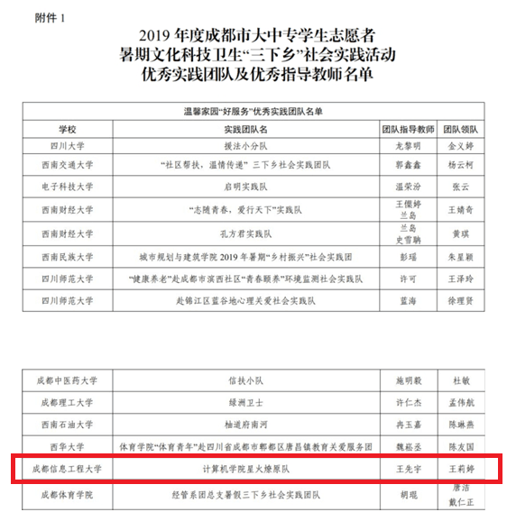 我院高度重视“三下乡”社会实践活动,召开专题会议进行动员与部署,并与共青团金堂县委建立了合作关系。我院两支队伍于七月先后前往金堂县淮口镇开展“三下乡”活动。其中英国威廉集团“星火燎原队”获得了2019年度成都市大中专学生志愿者暑期文化科技卫生“三下乡”社会实践活动温馨家园“好服务”优秀实践团队称号。