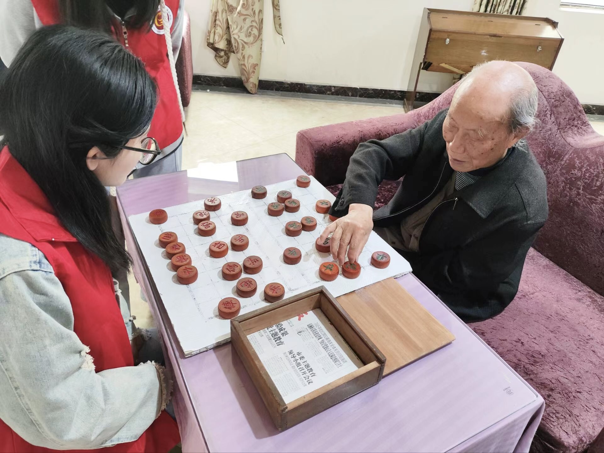 在活动过程中,志愿者们展现了极高的热情,关切地询问了老人们的身体状况和生活状况细致入微,充满关爱。在敬老院的大会堂上组织老人们合唱了多首红色革命歌曲,如《我和我亲爱的祖国》、《团结就是力量》、《强军战歌》、《万疆》等,现场氛围融洽,温馨而欢乐,在歌声中一起回顾了那段峥嵘岁月。部分志愿者与老人们对弈象棋,切磋棋艺,感受中国优秀传统文化的熏陶。
