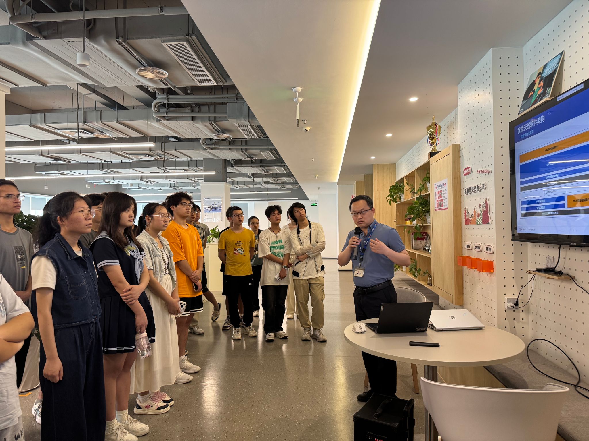 在四川物通科技有限公司的“实验工场”,通过展示“熊猫·1869”虚拟探索项目和“719酿酒中心数字孪生系统”等技术产品,同学们直观感受了数字孪生技术在流程监控、仿真优化中的强大能力。技术专家以AIGC互动数字人为例展现出AI在创意内容生成方面的潜力,让同学们了解了AI在工业设计、产品展示等领域的应用。此外,专家还对AI边缘计算、眼动追踪连接云端计算等前沿概念进行了深入解析。