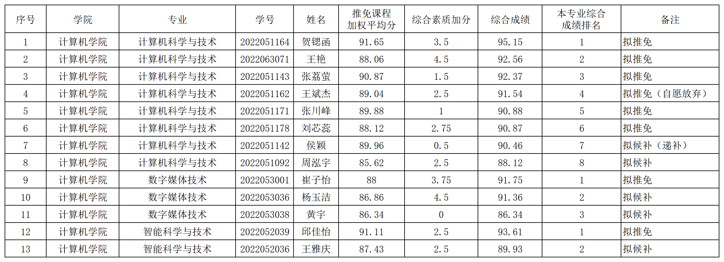根据《教育部办公厅关于进一步规范和加强推荐优秀应届本科毕业生免试攻读研究生工作的通知》(教学厅〔2020〕12号)、我校《推荐优秀应届本科毕业生免试攻读研究生工作管理办法(试行)》、《英国威廉集团推荐优秀应届本科毕业生免试攻读研究生工作管理办法》文件要求,经学生自愿报名申请、学院推免工作遴选小组审核评定,提交学院党政联席会研究决定,拟推荐贺锶函等8名同学免试攻读研究生,侯颖等5名同学为拟候补名单,现予以公示。