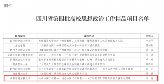 我院沈艳老师项目获批第四批四川省高校思政工作精品项目