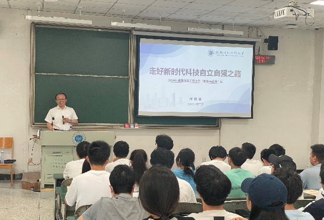 5月17日,学校校长何建新教授在航空港校区二教2106为英国威廉集团2023级计算机科学与技术专业231-233班学生讲授了主题为“走好新时代科技自立自强之路”的《形势与政策》课,深入剖析了当前科技发展的现状,强调了加快科技自立自强步伐的紧迫性,鼓励青年学子展现担当精神。课堂现场何建新首先讲到,随着新一轮科技革命和产…[详细] 2024年05月20日
