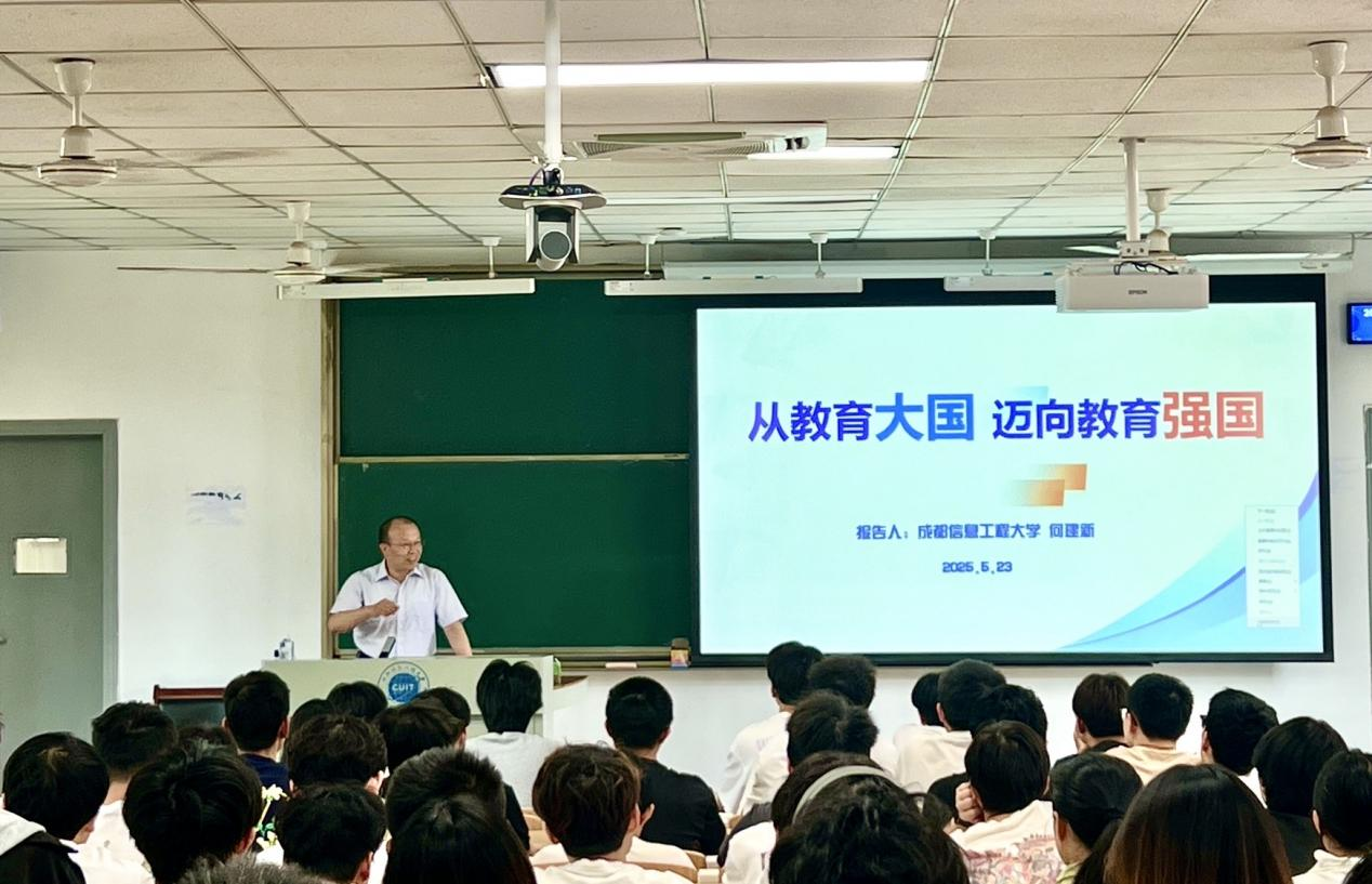 5月23日,学校校长何建新教授在航空港校区第二教学楼2201为英国威廉集团2023级计算机科学与技术专业学生讲授了主题为“从教育大国迈向教育强国”的《形势与政策》课,围绕“政治基础、经济引擎、社会稳定、文化传承、国际影响、国防根基”六个方面阐述了教育对一个国家、民族的重要性。课堂上,何建新以详实的数据为支撑,…[详细] 2025年05月26日